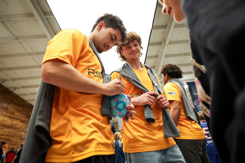 Season-ticket holders and media got their first look at Fort Wayne FC’s Autumn Gold-colored road kits Monday night, when team players donned them at a reveal party at Kruse Plaza.