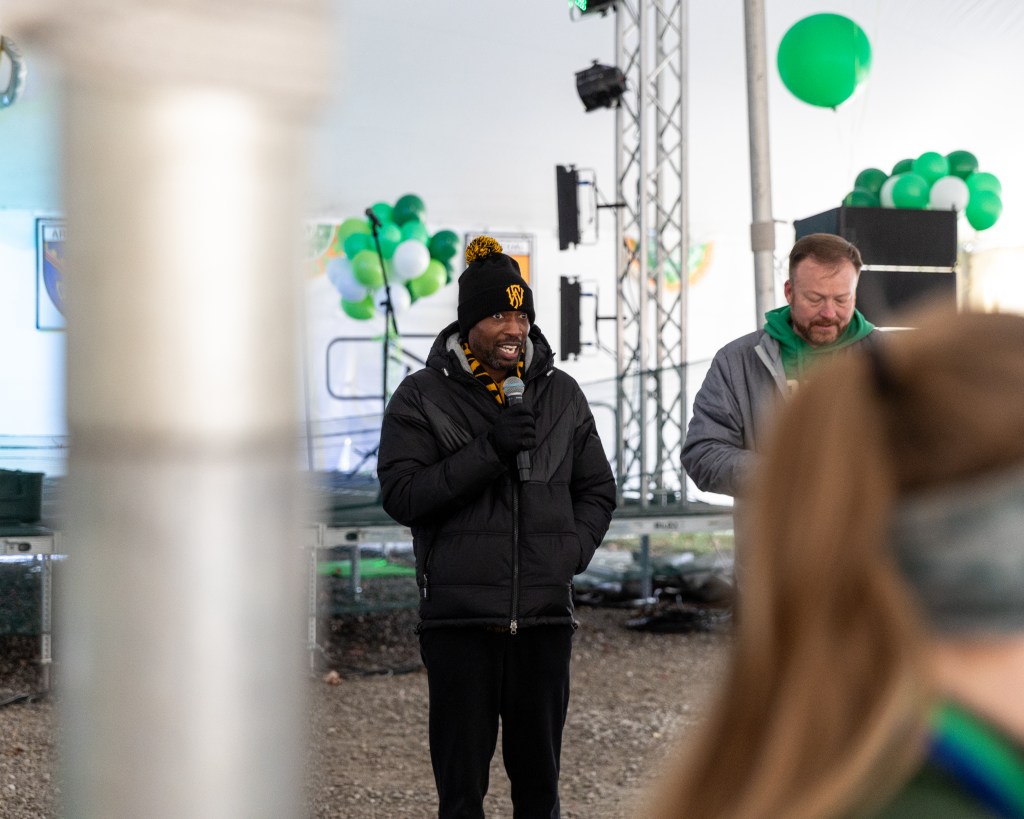 Beasley, Fort Wayne FC’s Co-owner and Director of Football Operations, and Avery, the club’s head coach, addressed the crowd who braved the cold temperatures and then took part in the parade itself.
